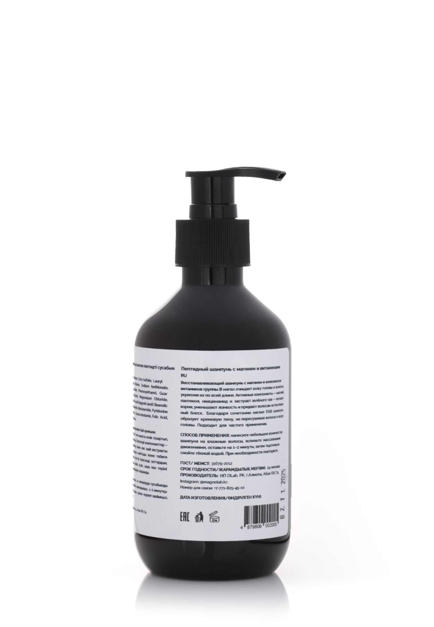 Применение: нанести на влажные волосы, вспенить, помассировать кожу головы 1–2 минуты, смыть тёплой водой. При необходимости повторить. Для выраженного эффекта использовать курсом не менее 4–6 недель.